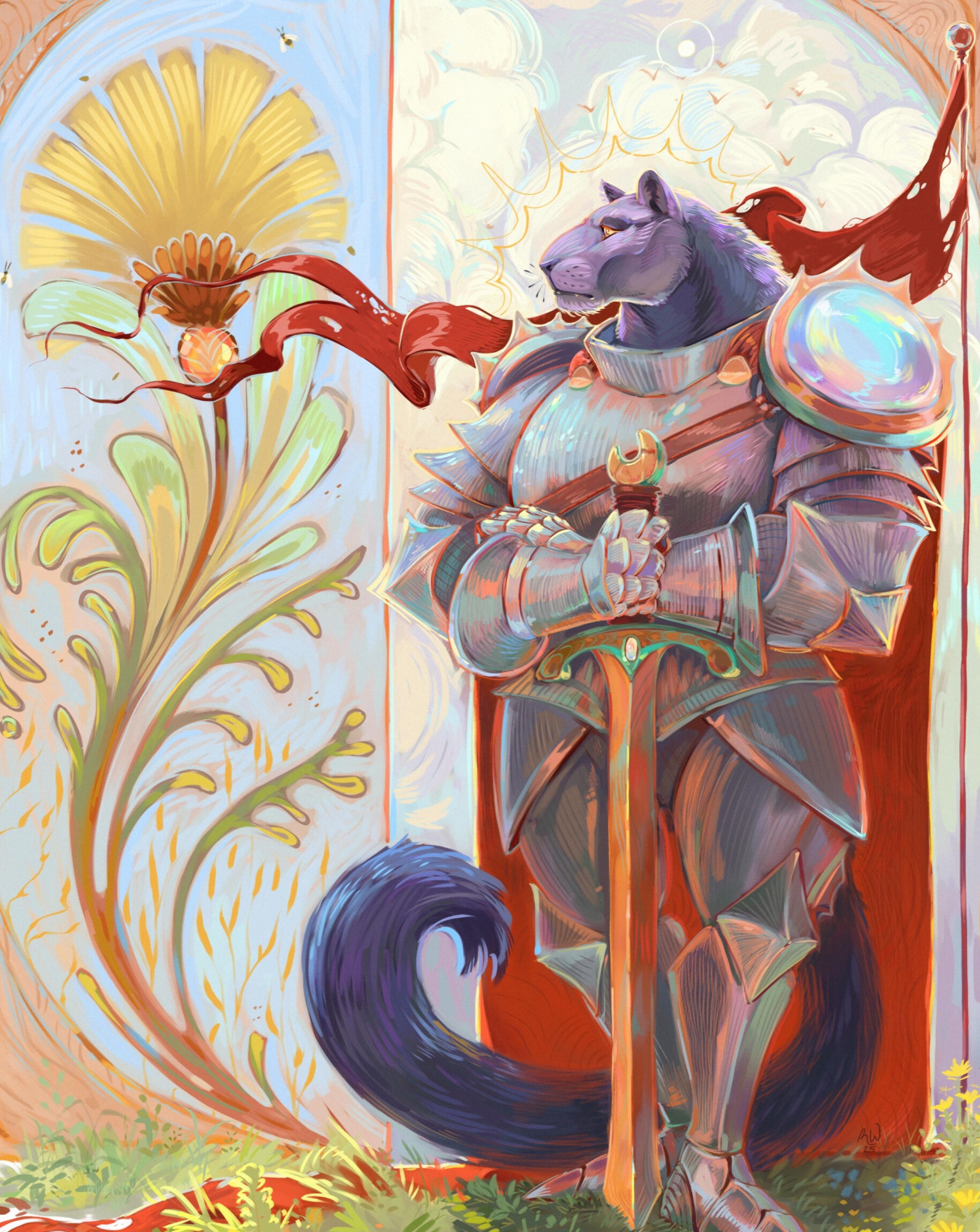 Art as if in a dream. Inspired by tarot, tapestry, and illuminated manuscripts.